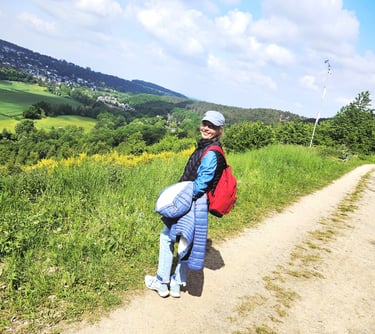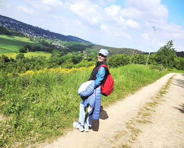 Ich bin gerne in der Natur unterwegs - immer mit einem Rucksack und Sonnenschutz auf dem Kopf