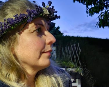 Zum Mittsommer flechte ich mir einen Kranz und meditiere am Feuer